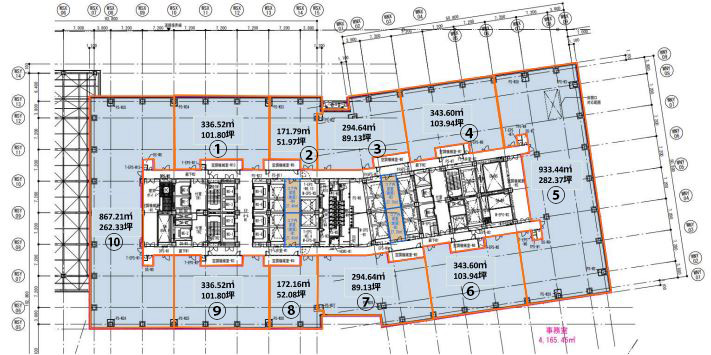 備考 | ・天井高:2,800㎜ ・床過重:500kg/㎡(ヘビーデューティゾーン800kg/㎡) ・OA100㎜・電源容量50VA/㎡ ・給排水設備 ・非常用発電機(72時間) |