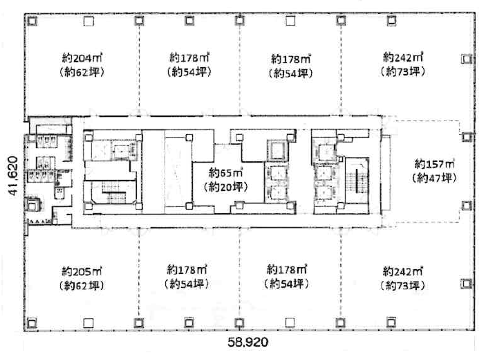 | 備考 | ・天井高:2,800㎜・OA100㎜・LED照明・コンセント容量50VA/㎡・床過重500kg/㎡(ヘビーデューティゾーン800kg/㎡)・自然換気窓完備・非常用電源(72時間)・防潮板設置・防災備蓄倉庫・電気式冷暖房同時水冷ヒートポンプパッケージ方式 | ||